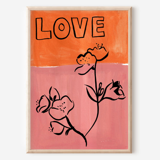 70s LOVE FLORAL ART PRINT